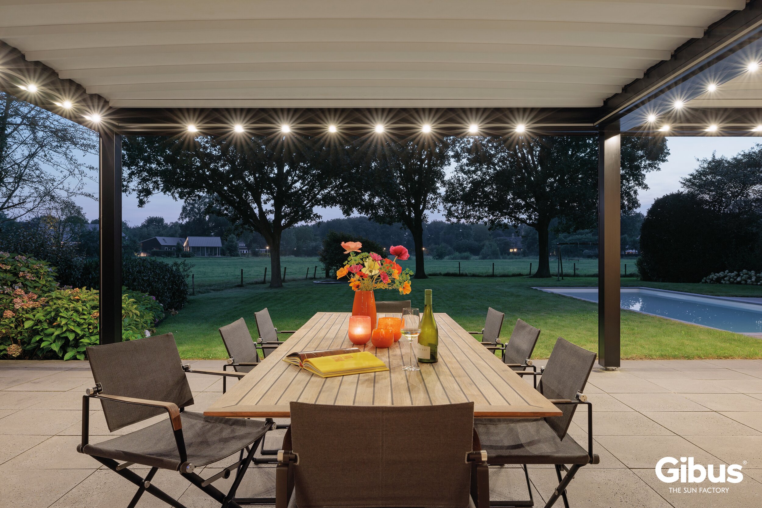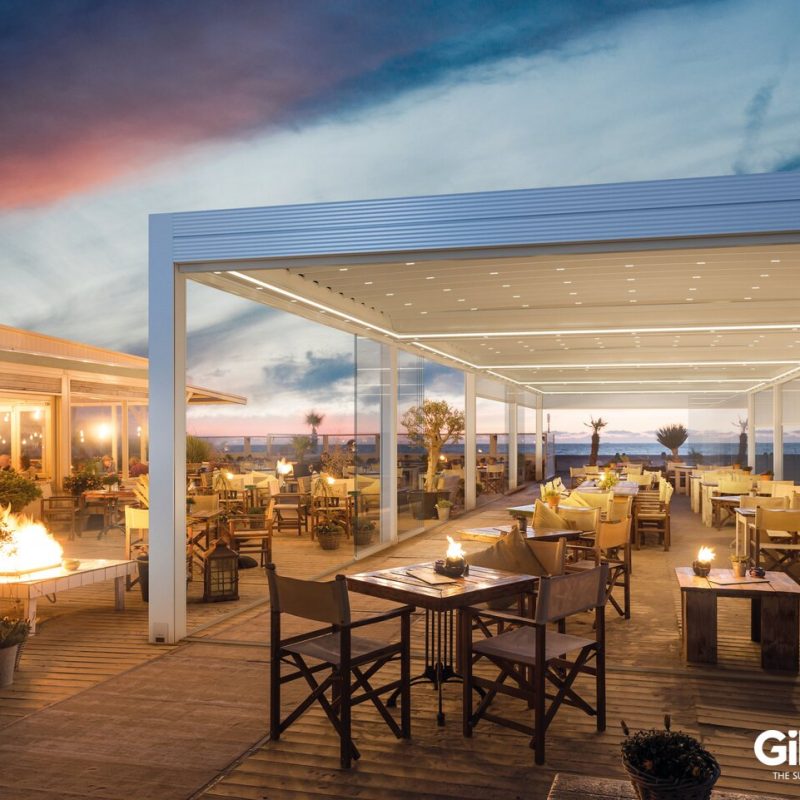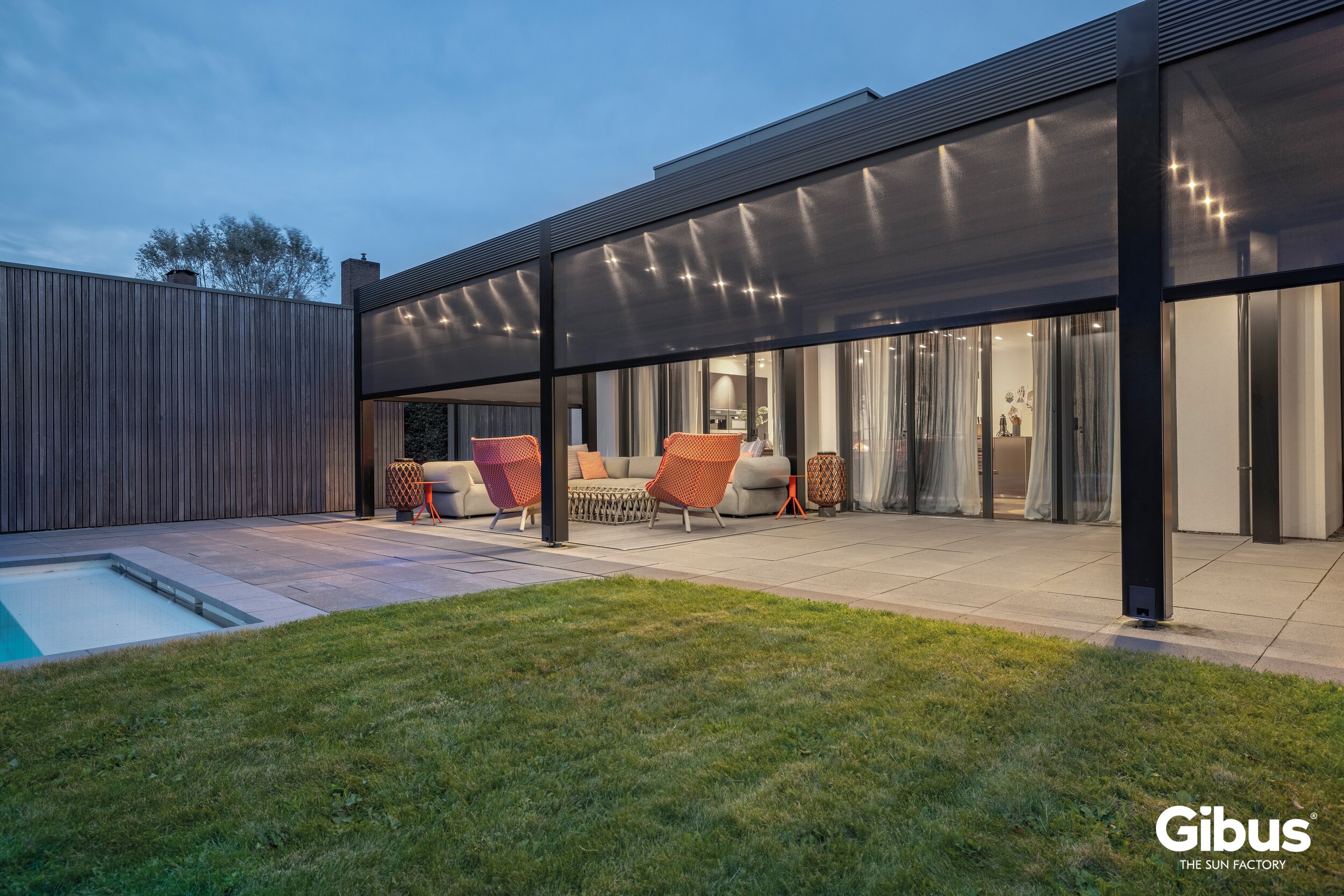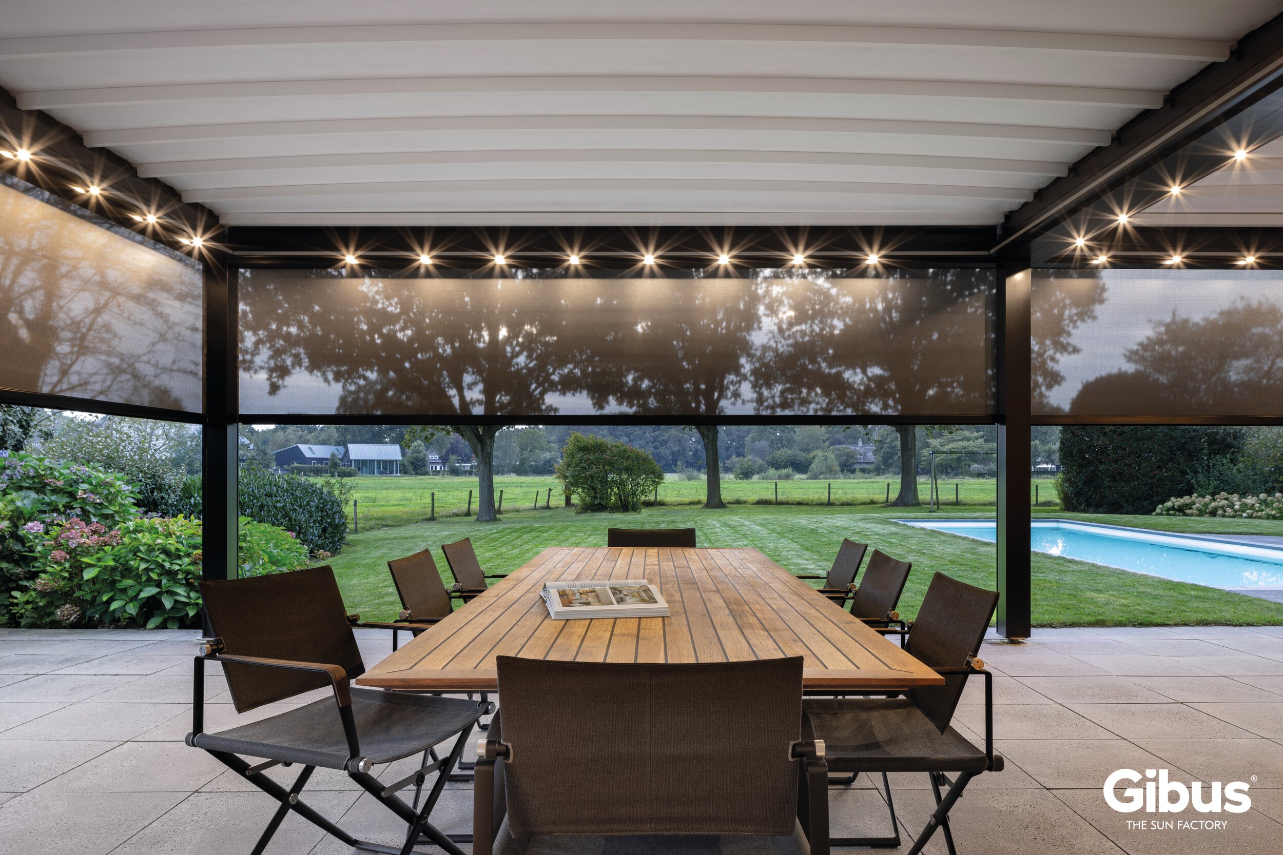 Das Modell Azimut von Gibus vereint modernes Design, fortschrittliche Technologie und flexible Konfigurationsmöglichkeiten. Mit ihrem waagrechten Tuchsystem und integrierten Funktionen ist Azimut die ideale Wahl für stilvolle und funktionale Außenbereiche. Dank des patentierten Systems ermöglicht sie maximalen Komfort bei jedem Wetter.