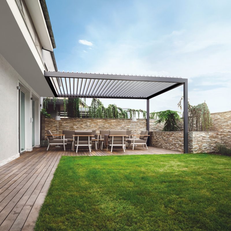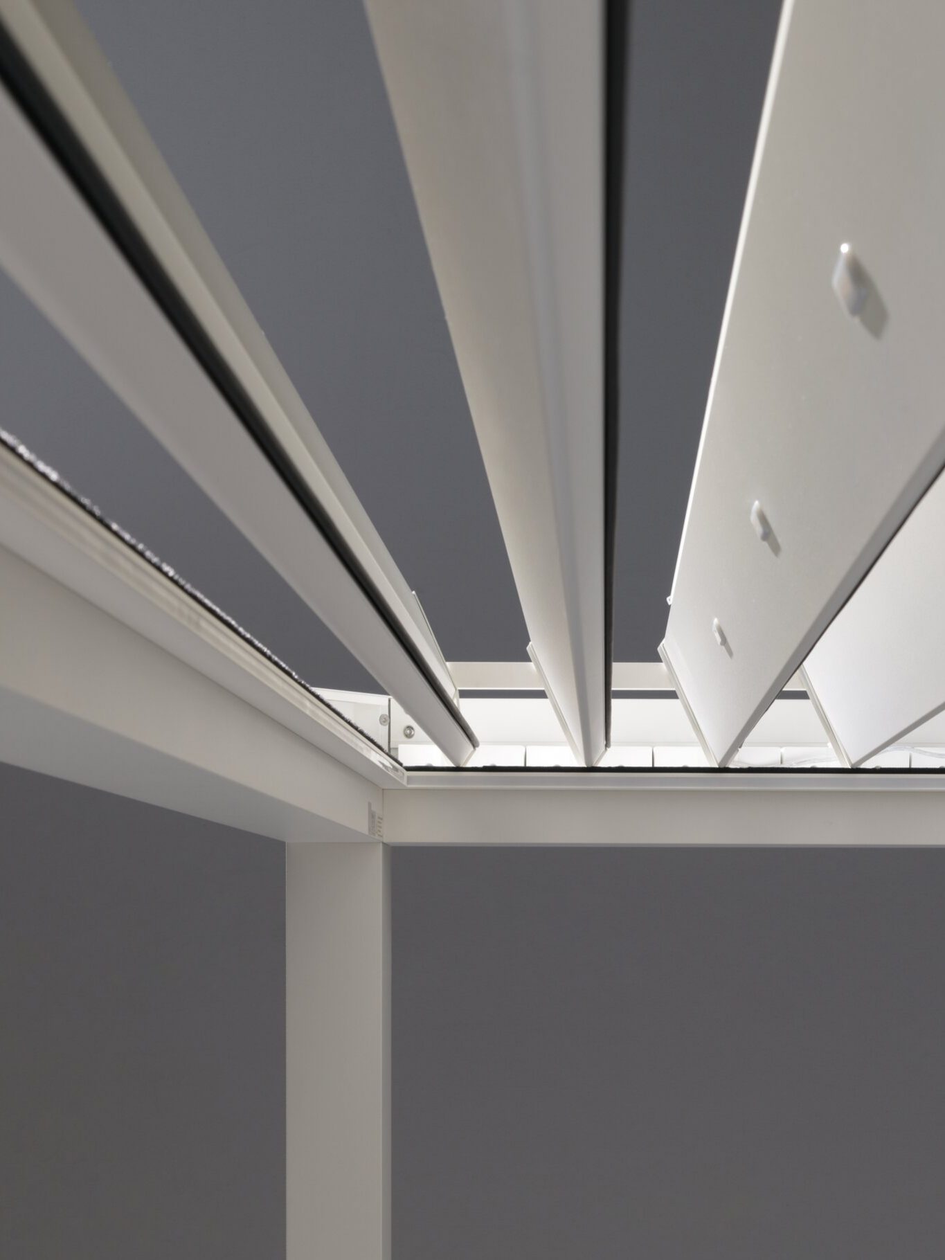 Movie bietet native Konnektivität und kann über eine eigene App gesteuert werden. Neben der mitgelieferten Fernbedienung haben Sie die Möglichkeit, das Lamellendach direkt über Ihr Smartphone zu steuern – egal ob zu Hause, im Büro oder unterwegs. Darüber hinaus ist eine Integration in die Gebäudeautomation möglich.