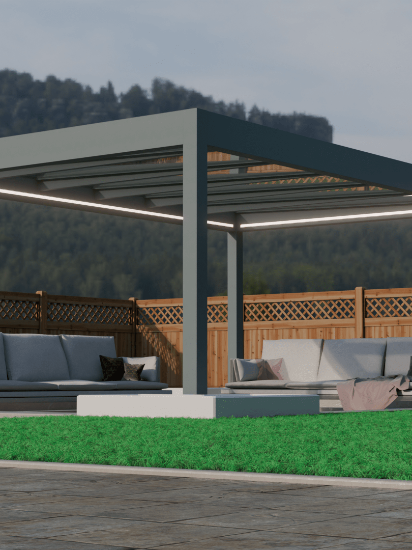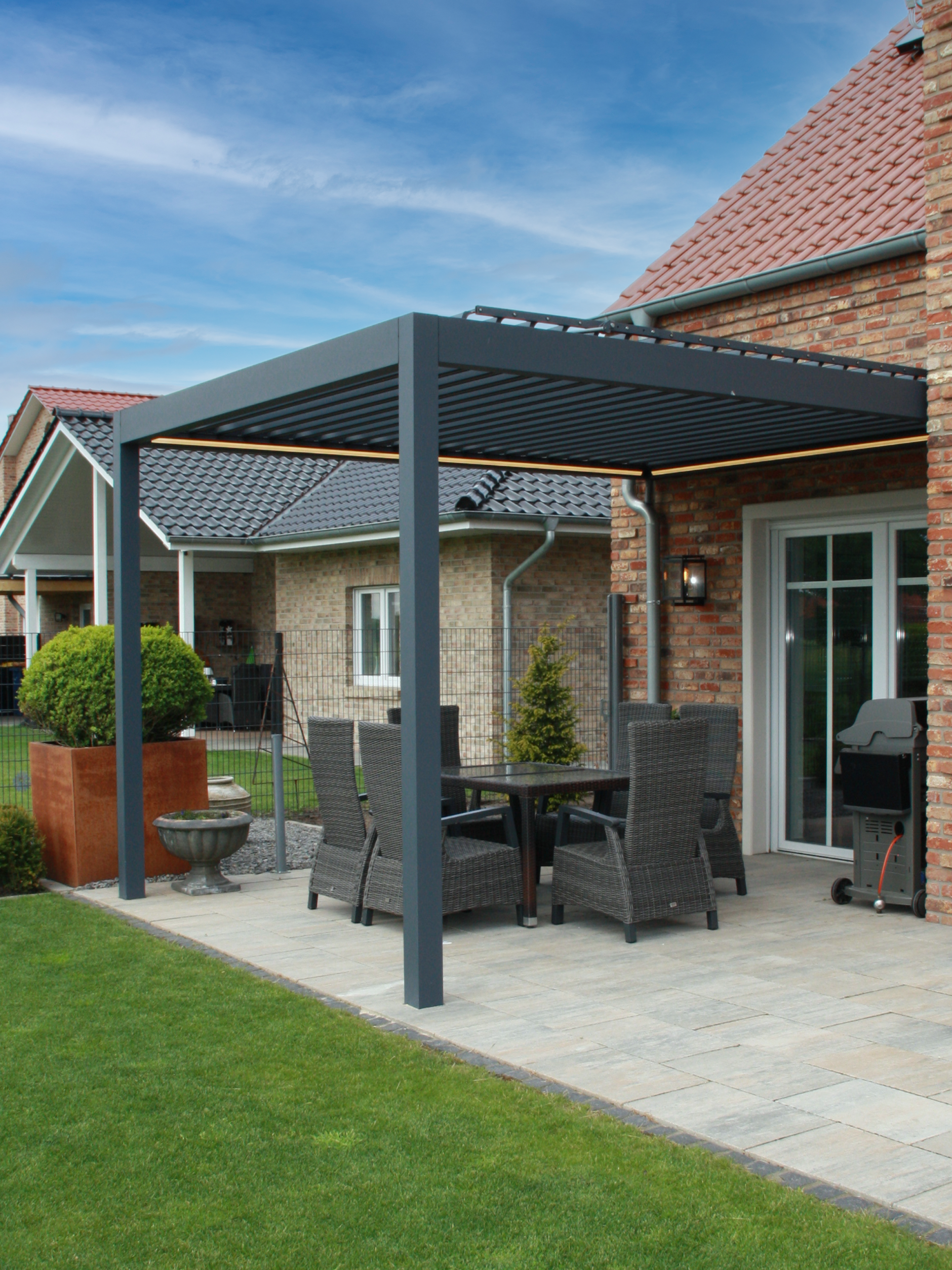 Die warme Luft bleibt im Sommer nicht unter Ihrem Lamellendach, ob Sie nun die Sonne genießen oder nicht. Gleichzeitig sind Sie im Winter optimal vor kalten, regnerischen Bedingungen geschützt.