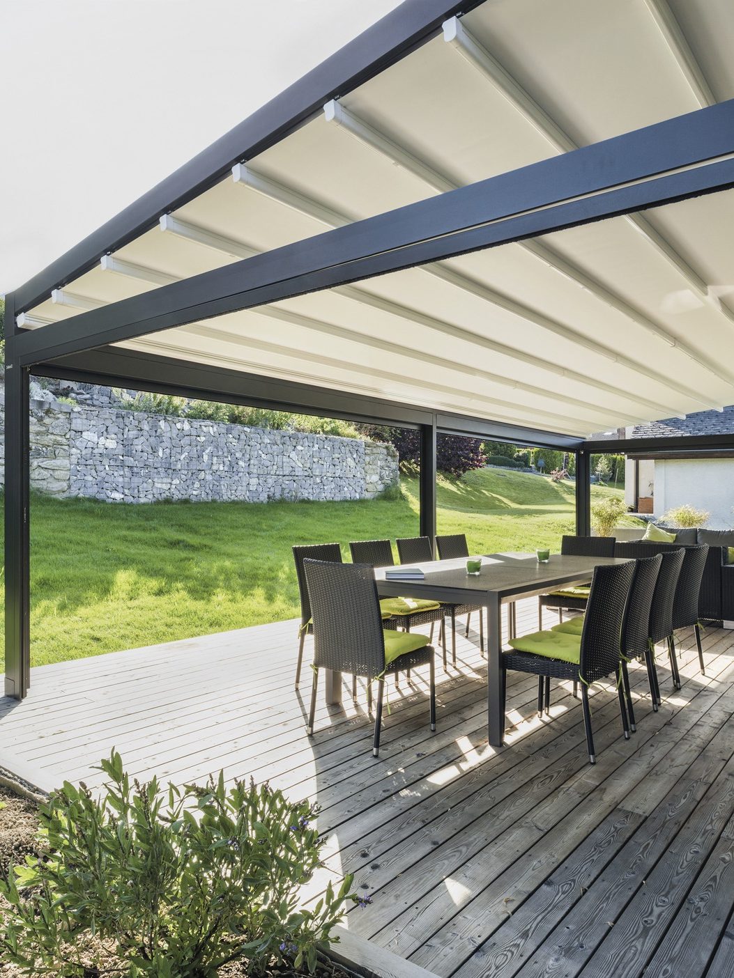 • Zip-Screens und Verglasungen: Schutz vor Wind, Wetter und neugierigen Blicken.