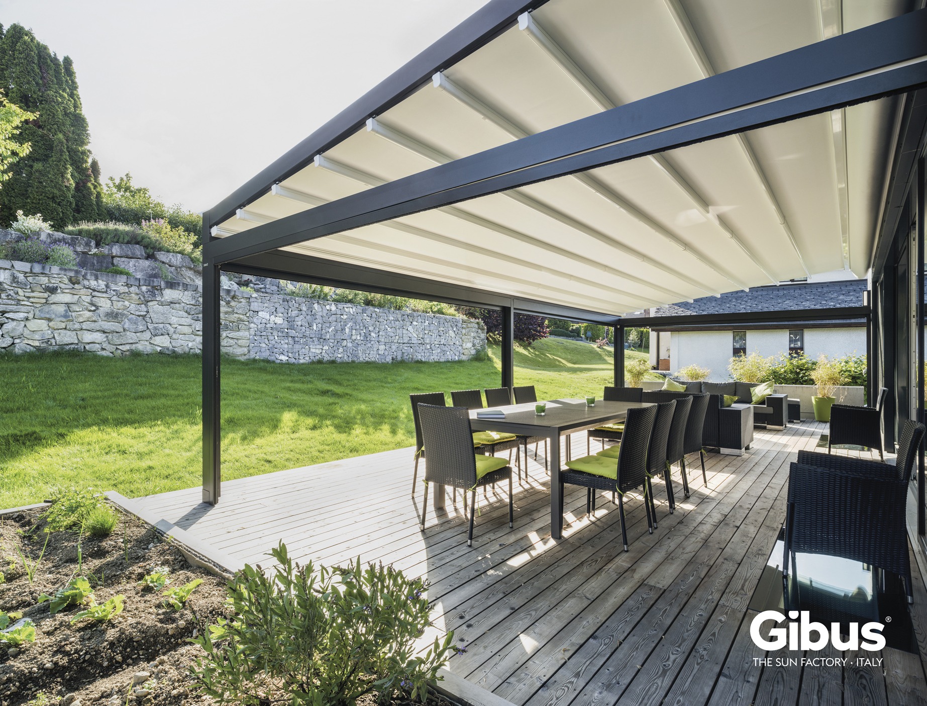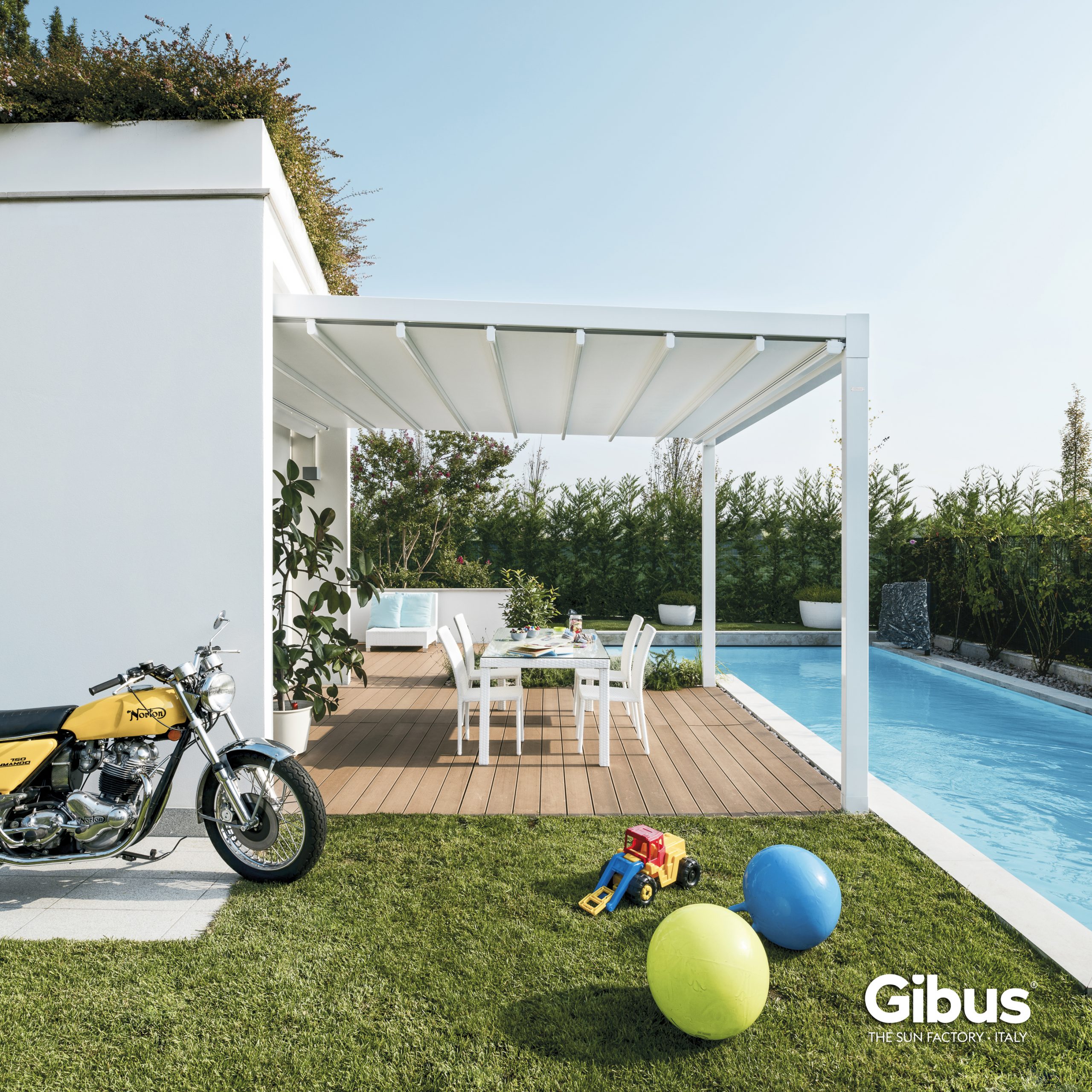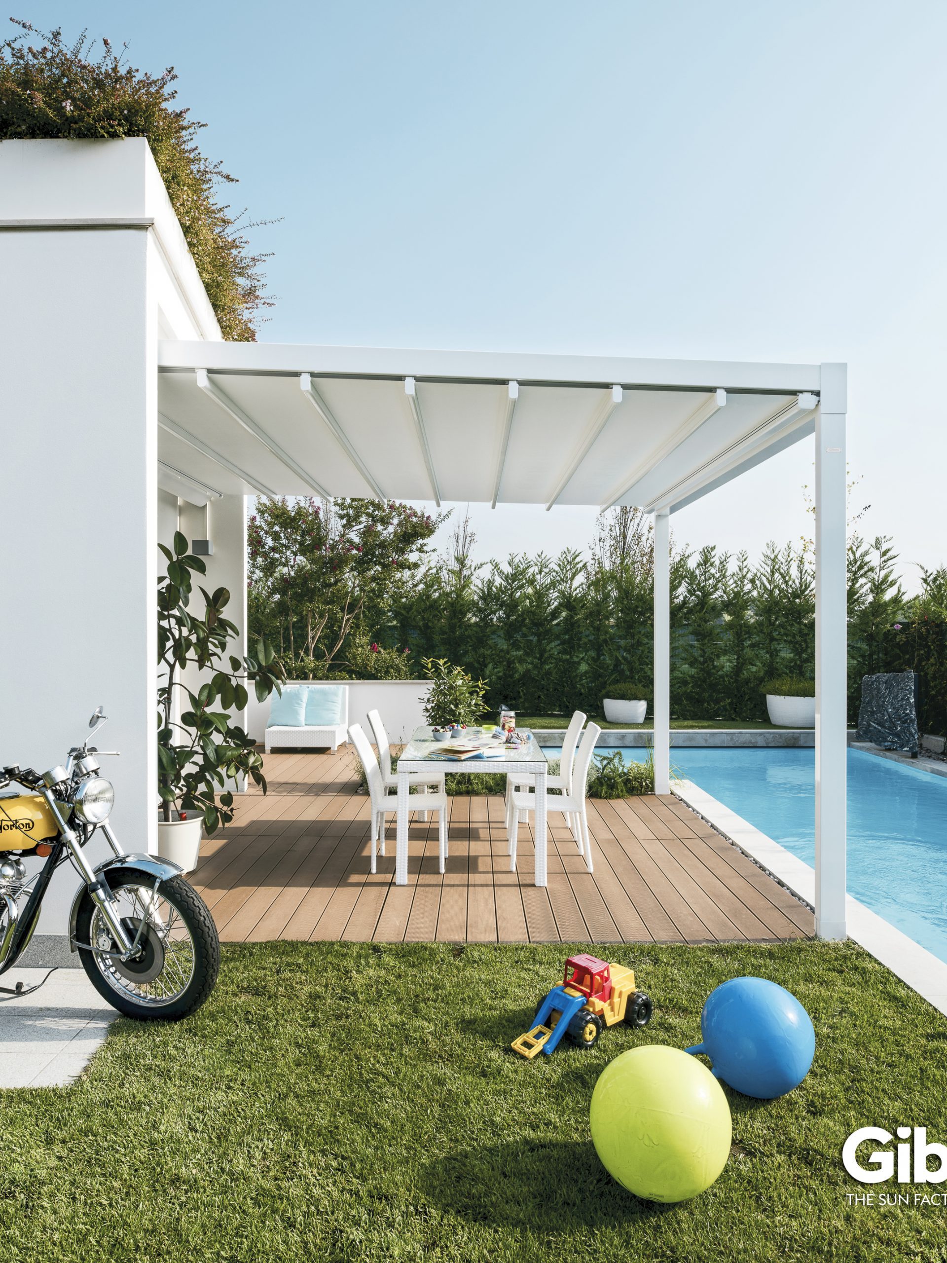 Das Modell Quadra von Gibus ist die ideale Pergola für alle, die auf der Suche nach einem stilvollen und gleichzeitig funktionalen Sonnenschutz sind. Mit ihrem klaren Design und der robusten Konstruktion fügt sich Quadra nahtlos in jeden Außenbereich ein und bietet Schutz bei jedem Wetter.