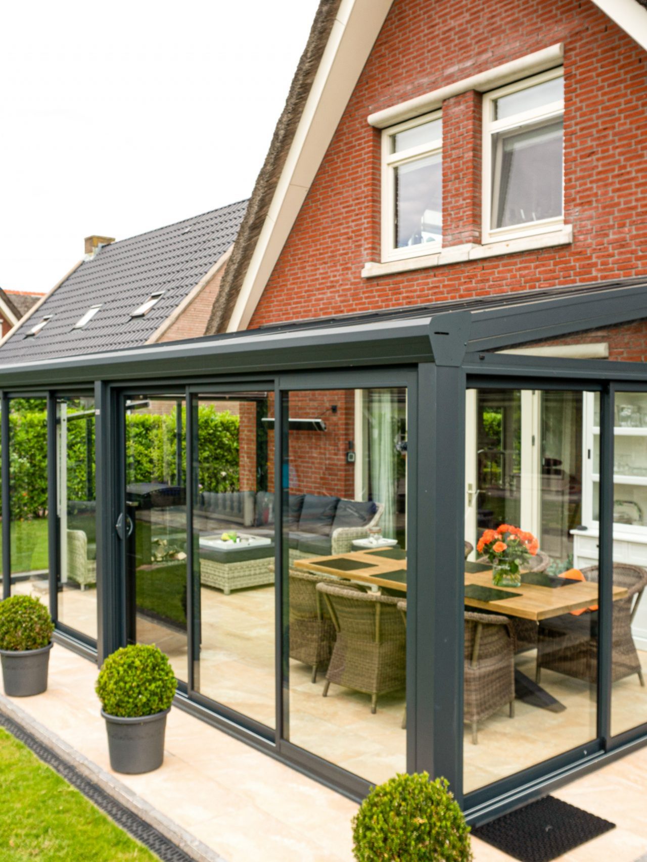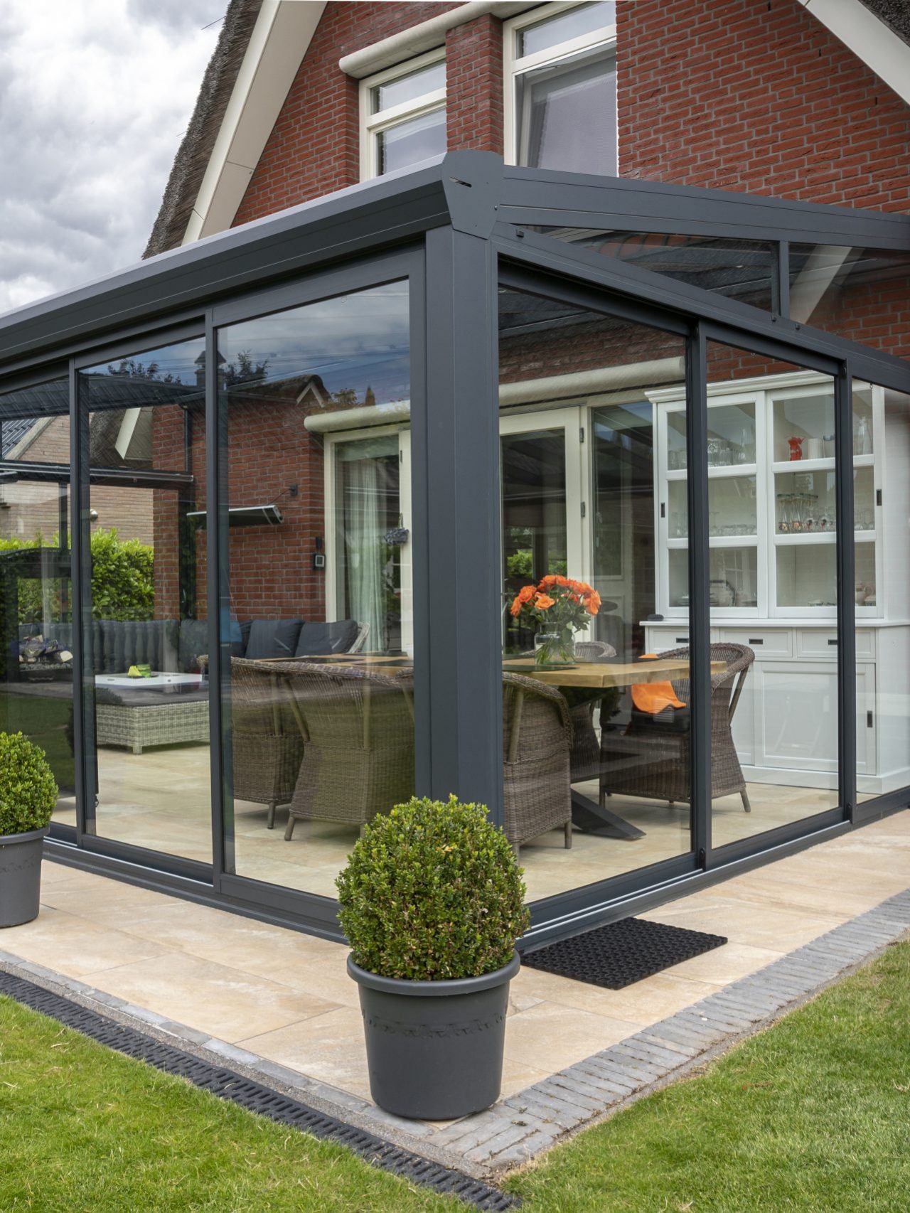 Die Topline XL bietet alle Vorzüge einer regulären Topline und ermöglicht besonders große Spannweiten. Die besonders starken Pfosten und die extra starke Rinne sorgen für extreme Robustheit. Spezielle Montagebügel, Pfosten und Klickleisten verblenden bei der Montage die Rinnenverschraubung. Dies sorgt für ein nahtloses Erscheinungsbild, eine harmonische Gesamtwirkung und einen fantastischen Panoramaausblick. Die Topline XL ist sehr widerstandsfähig und trotzt hohen Schnee- und Windlasten.