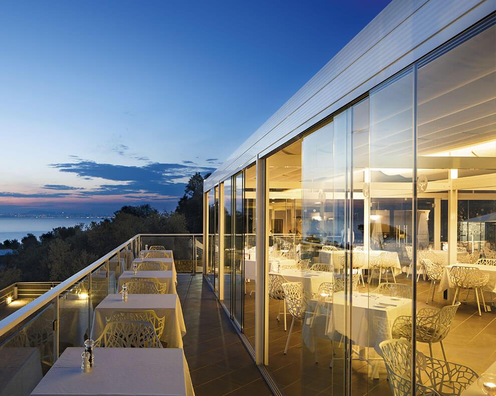 Unsere Verglasungslösungen verbinden Stil und Zweckmäßigkeit, indem sie Innen- und Außenbereiche elegant voneinander trennen oder nahtlos verbinden. Ob in Privathäusern, Restaurants, Hotels oder Geschäften – die Einsatzmöglichkeiten sind vielfältig und bieten optimale Flexibilität. Hochwertige Glasschiebetüren aus gehärtetem Sicherheitsglas (10 oder 12 mm) sorgen für maximale Stabilität und Sicherheit. Die optionale klare oder satinierte Ausführung passt sich an jedes Design an.