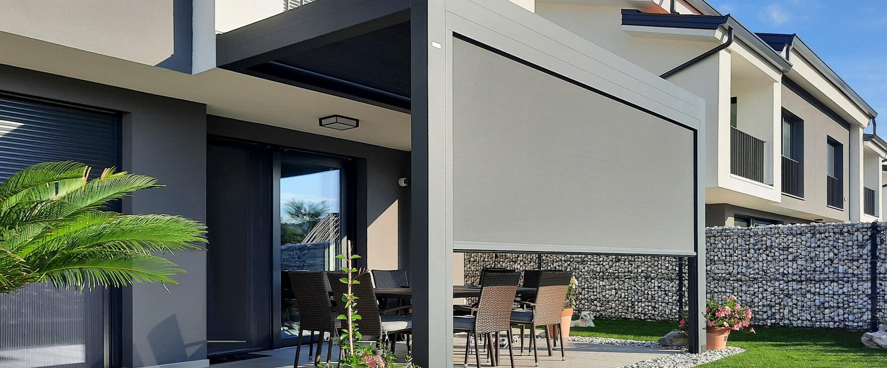 Verschiedene Modelle – mit oder ohne Kassette – bieten Flexibilität in der Gestaltung. Die Kassetten sind entweder einfach, versenkt oder mit doppeltem Behang verfügbar, wodurch zwei unterschiedliche Stoffe kombiniert werden können. Zip Screens verbinden Funktionalität, Energieeinsparung und modernes Design zu einer vielseitigen Lösung für Außenbereiche.