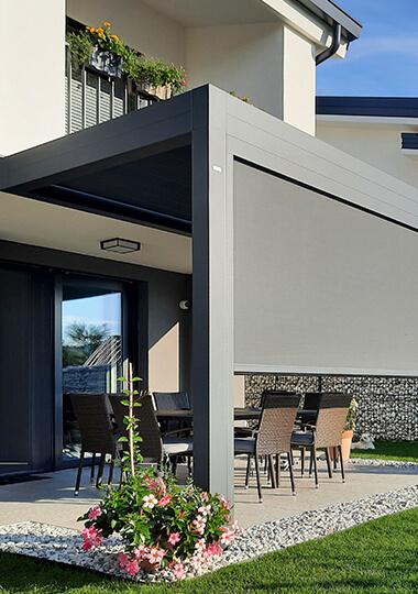 Die Stoffe können je nach Jahreszeit angepasst werden: Sonnenschutz, Verdunkelung oder Insektenschutz für den Sommer sowie transparente Cristal-Gewebe für den Winter. Zip Screens verbessern nicht nur den Klimakomfort, sondern sind auch energieeffizient, da sie die Wärmeaufnahme reduzieren und die Innenräume auf natürliche Weise kühlen.